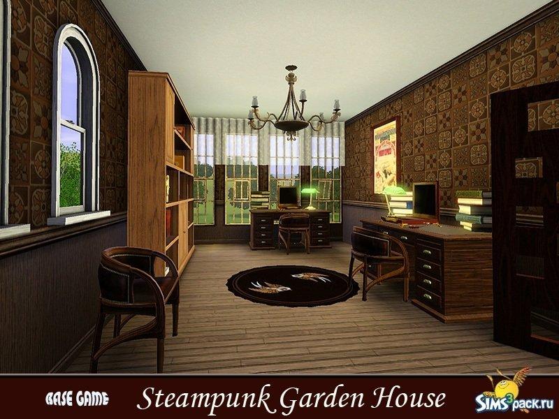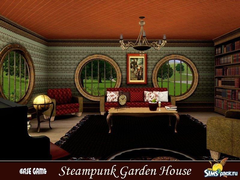 Это строение скорее можно отнести к ранчо американского фермера. Все выполнено в просто стиле из деревянных конструкций. Вокруг дома обильно расставлены декорации в виде колес от телеге- это добавляет дому уюта.
