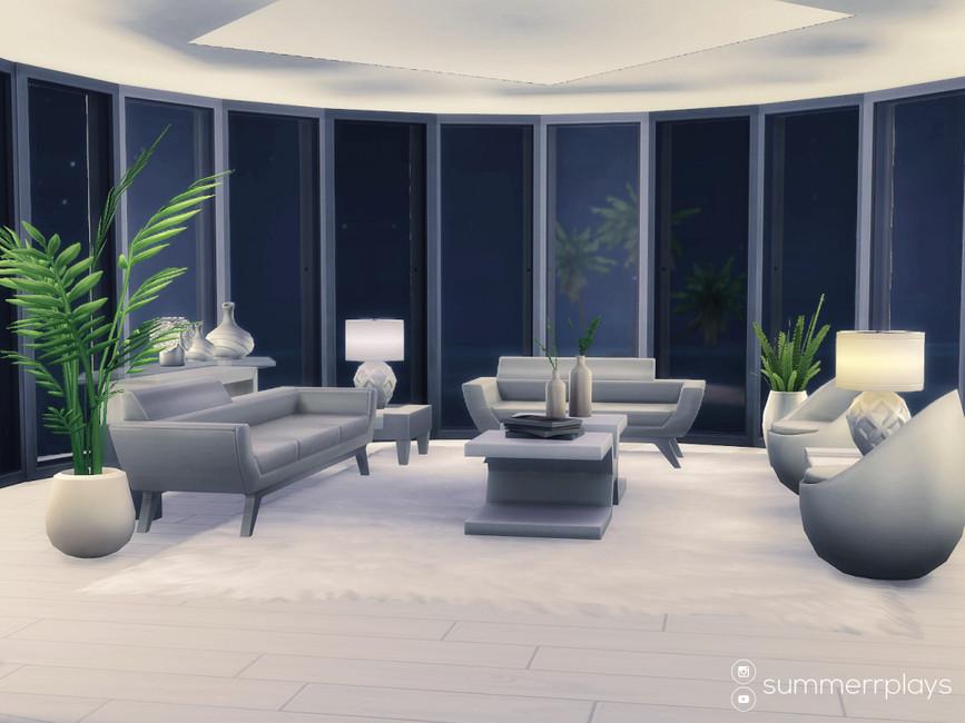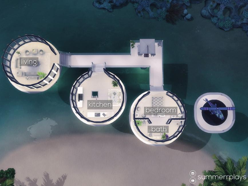 Футуристический жилой дом рассчитан на 1-2 симов и представляет собой три отдельно стоящие разноуровневые комнаты. В одной столовая и кухня, в другой – спальная и ванная комната , в третьей – гостиная. Также имеется общий коридор-терраса, лестницы и вертолётная площадка.