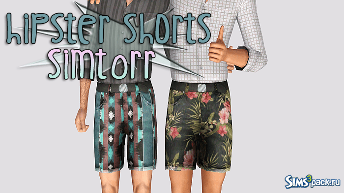 Мужские шорты свободного кроя, классической длинны немного выше колена- отличный представитель одежды стиля хиппи! В наборе представлены четыре расцветки шорт : от гавайских цветов, до классического джинса.