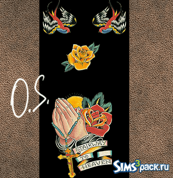 Яркое и нежное тату, носящее несколько богоугодный характер, изображает на ключицах симки райских птиц в полете. А плечо татуировано изображением рук молящегося, и эффектной желтой розой с шипами. Надпись «Путь в рай» довершает изображение.