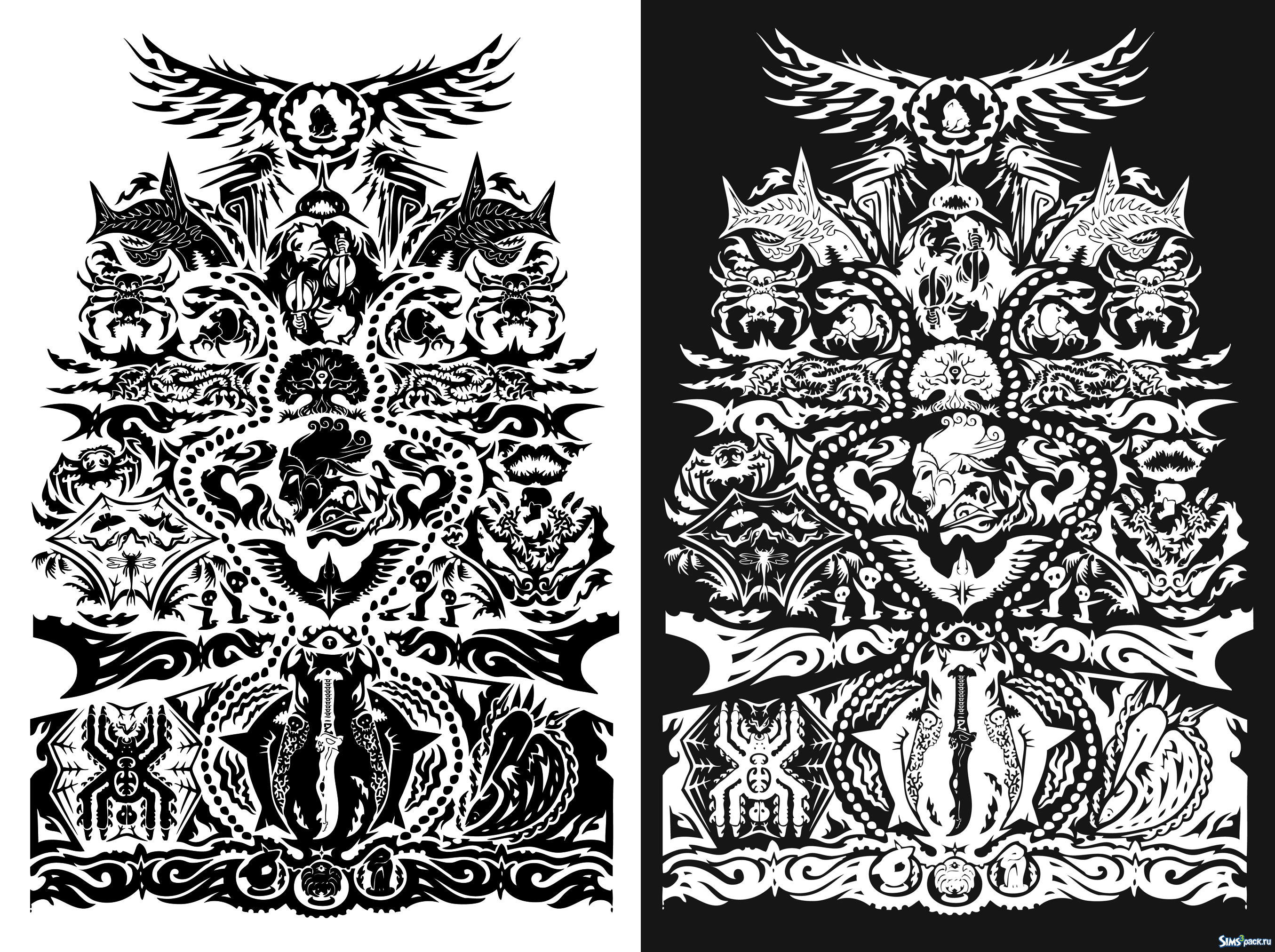 Актуальная татуировка для мужественной половины жителей Симсити. Черное тату, наносимое на ваш выбор либо на часть руки до локтя, либо от кисти до плеча – отлично подчеркнет стиль героя. Основные персонажи тату : паук, акула и цапля.