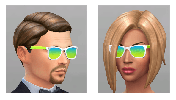 Стильные солнцезащитные очки в модной и современной оправе со стеклами ярких градиентных цветов (от бирюзового к кислотно-зеленому) подойдут как для симов, так и для симок, и мгновенно подарят радостное летнее настроение и настроят на веселый пляжный отдых.