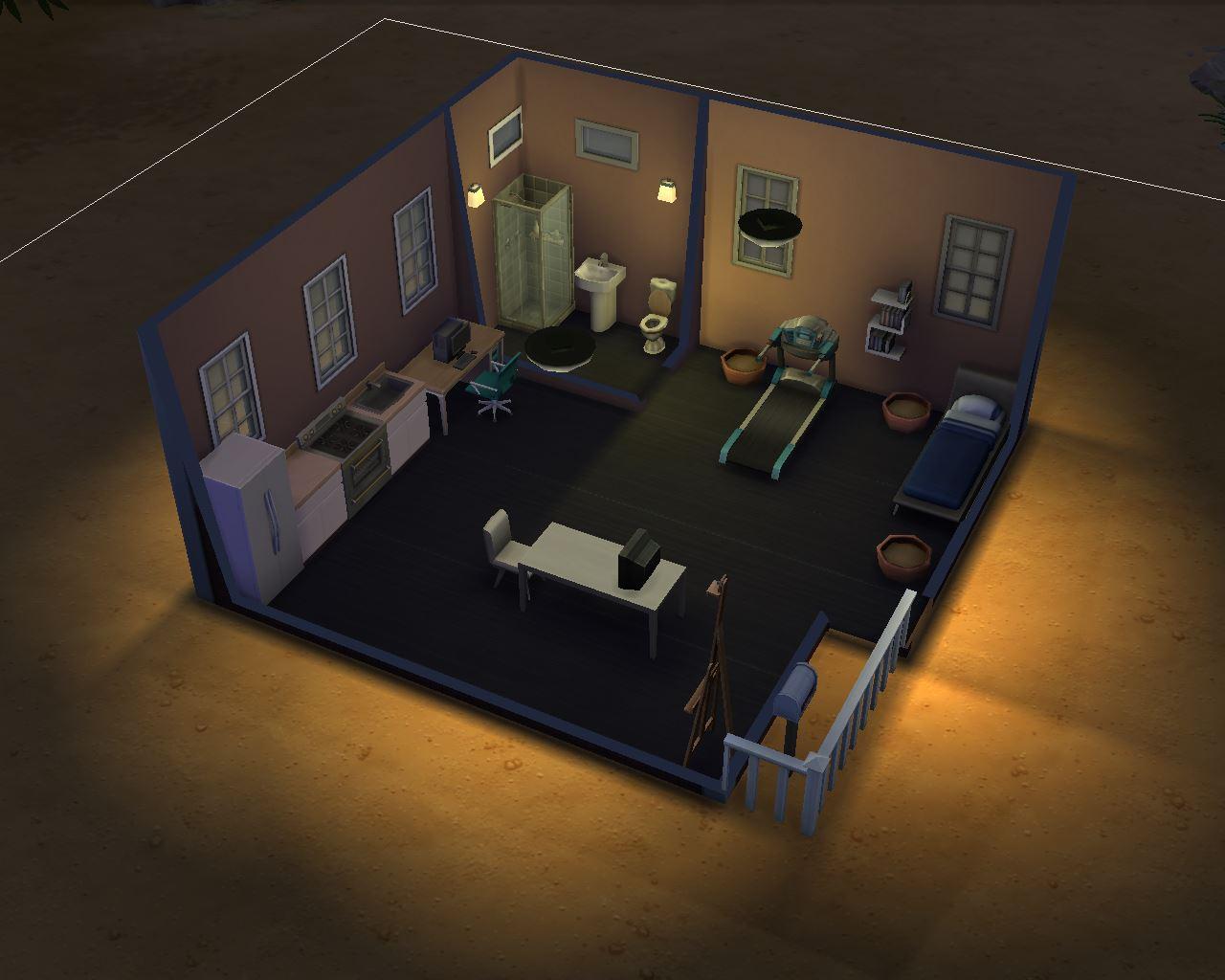 - Выберете любой понравившийся участок и постройте небольшое помещение в 64 клетки (8х8). Это будет дом сима. Дом не обязательно должен быть квадратным, главное, количество клеточек.