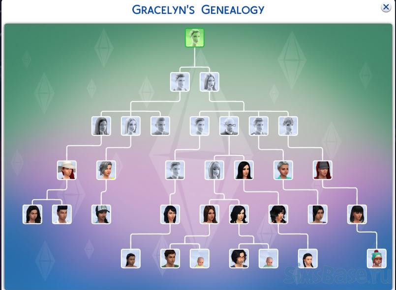 - Шестое поколение – у одного из детей главного сима должны быть дети, или вы можете иметь детей у них обоих, нет никаких правил относительно того, у кого есть дети. Это внуки главного сима. Когда старший внук – подросток, проводите семейное воссоединение.