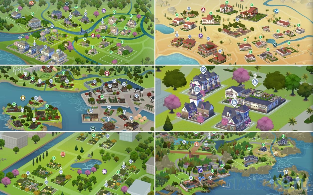 - Названия миров и их описания (где-то описания от ЕА, а где-то новые от islerouxsims согласно новым семьям и застройкам).
