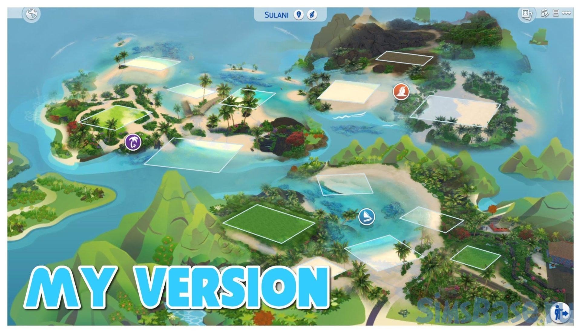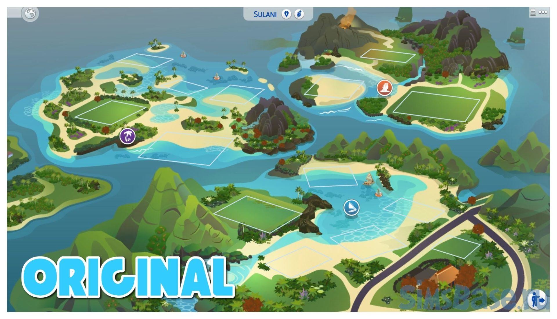 Это не застройка и не новые текстуры для объектов в игре. Это новый вид карты Сулани, который предстаёт нашему взору при выборе участка для заселения, или семьи для игры. Существующие карты по умолчанию отражают только некоторые значимые объекты, и то, не все. Но как найти вулкан или узнать о густоте растений?