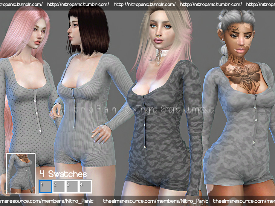 Девушки, обратите внимание на этот потрясающий кастомный контент для The Sims 4 — короткий облегающий комбинезон NitroPanic x Thight Short Jumpsuit от талантливого создателя Nitro_Panic! Этот стильный джампсьют идеально подчеркивает фигуру вашей симочки, делая её образ смелым, сексуальным и современным. Короткие шорты в сочетании с облегающим верхом создают эффект второй кожи — thight fit выглядит невероятно реалистично и соблазнительно.