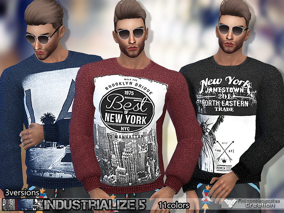 Представляем вашему вниманию крутой набор толстовок PZC_Industrialize 5 Sweatshirt Set от талантливого создателя Pinkzombiecupcakes! Этот набор идеально подойдёт для мужских симов-подростков, взрослых и пожилых, добавив в их гардероб нотку современного индустриального стиля.