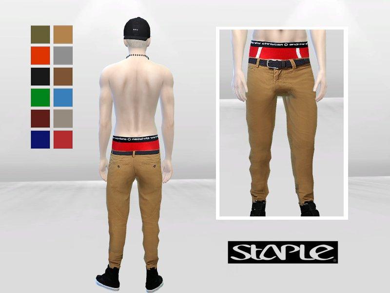 Зауженные заниженные мужские брюки весенне-летнего типа. Подходят для повседневного ношения. Доступны в 12 различных цветовых вариациях. Предназначены для молодых и взрослых персонажей-мужчин.