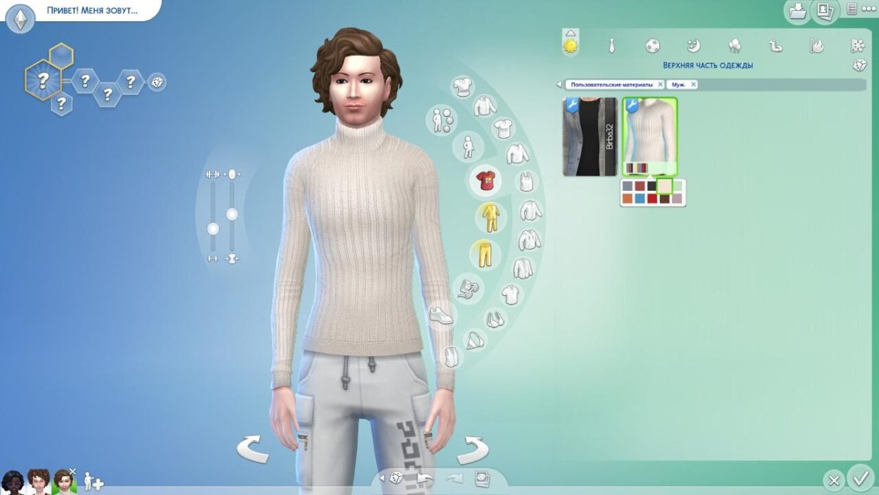 В архиве 18 насыщенных и спокойных оттенков: классический чёрный, кремовый, глубокий бордо, тёплый горчичный, благородный тёмно-зелёный и многие другие. Каждый цвет подобран так, чтобы ваш сим выглядел дорого и современно в любой ситуации — от прогулки по парку Сан-Мишуно до уютного вечера в загородном доме.