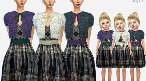 Зимняя коллекция для стильных мам и их маленьких модниц. Платье в крупную шотландскую клетку с широким поясом, дополнено гипюровым болеро.
