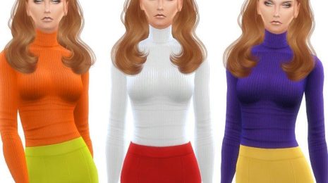Яркая облегающая водолазка смелых расцветок в крупный вертикальный рубчик.