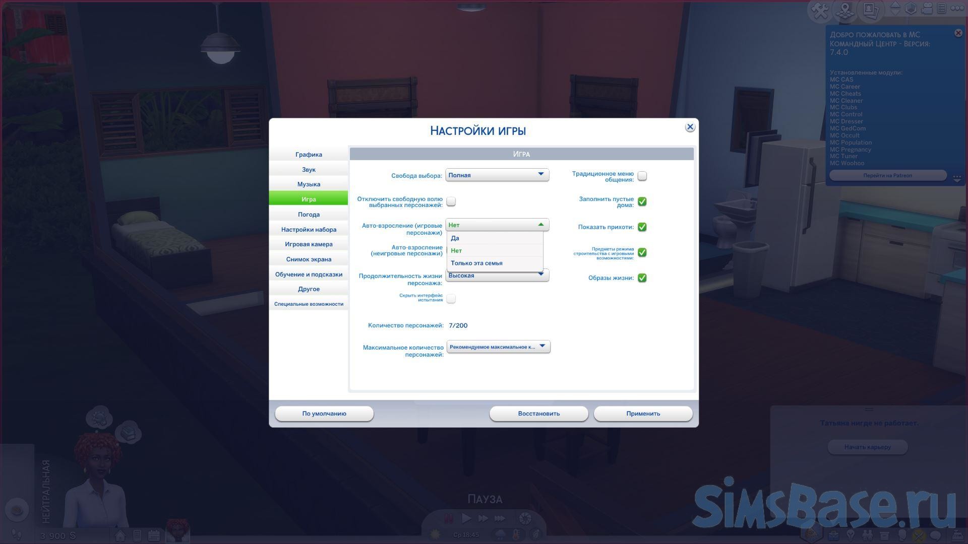 Примечание: включение замораживания шкалы времени не позволяет вашим симам заводить детей, а уже существующие дети не вырастают и не достигают совершеннолетия самостоятельно.
