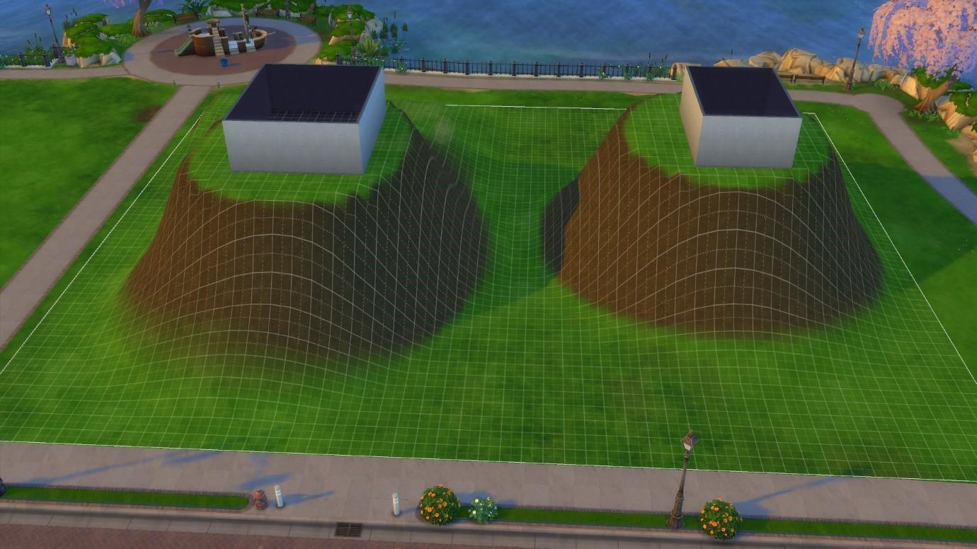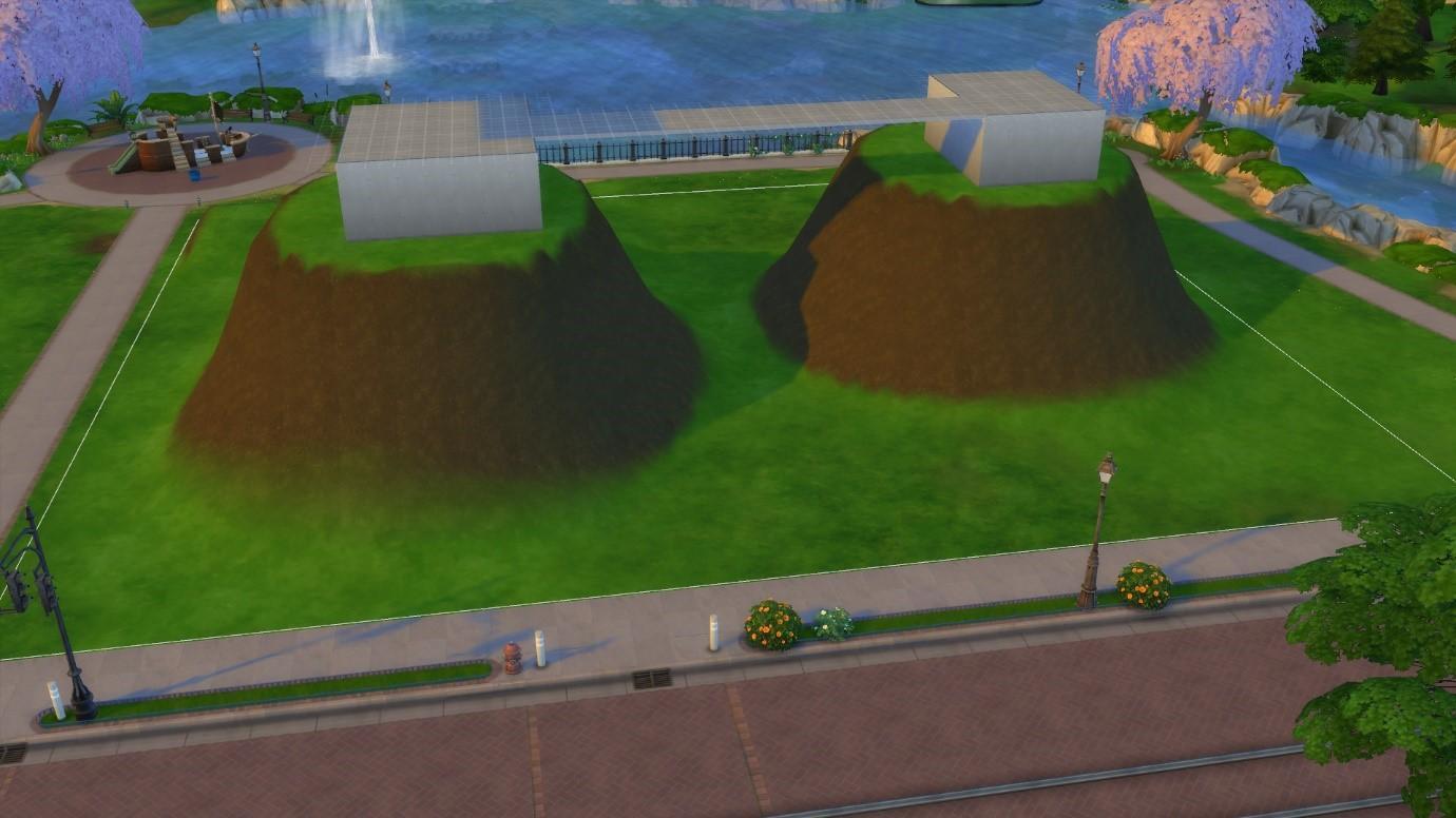Фонтаны ведут себя почти также. Однако вместо фундаментов при изменении ландшафта вы увидите нижние слои земли.