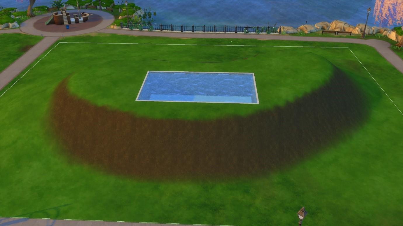 Бассейны и фонтаны могут быть построены на любой плоской поверхности. Они функционируют так же, как и надземные здания . Если вы разместите свой бассейн перед тем, как поднимать рельеф, рельеф будет сформирован вокруг вашей структуры автоматически.
