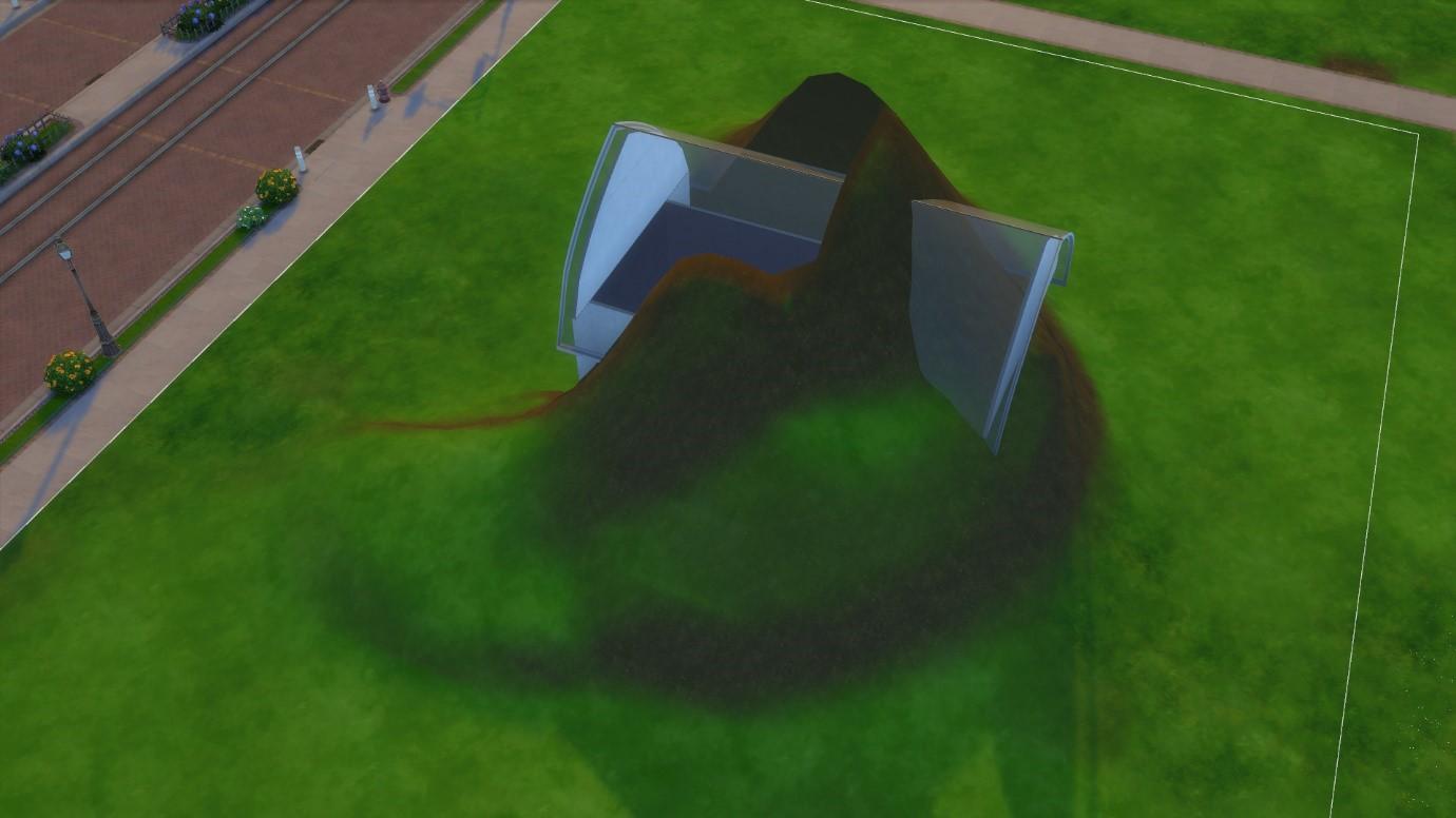 В отличие от стен и комнат, крыши могут находиться внутри рельефа местности. Крыши не влияют на холмы , например, и будут легко исчезать в любом неровном грунте.