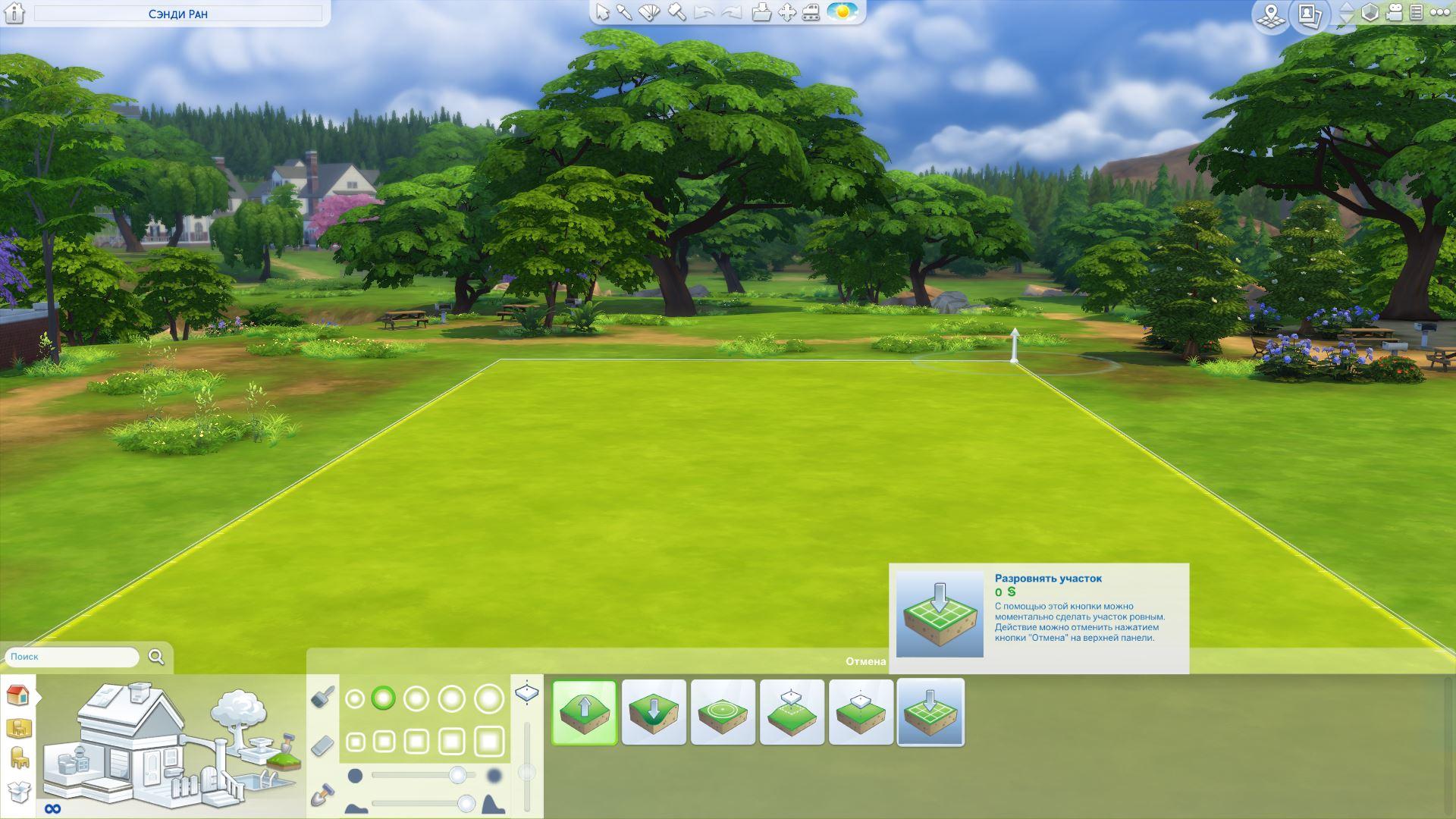 Это не столько инструмент, сколько кнопка. Вы заметите, что его значок выглядит иначе, чем другие инструменты; он имеет синий фон, а не белый. Нажатие этой кнопки автоматически выравнивает весь ваш лот. При этом здания, объекты, ландшафтный дизайн и пр. удаляться не будут. Но они опустятся до уровня земли.