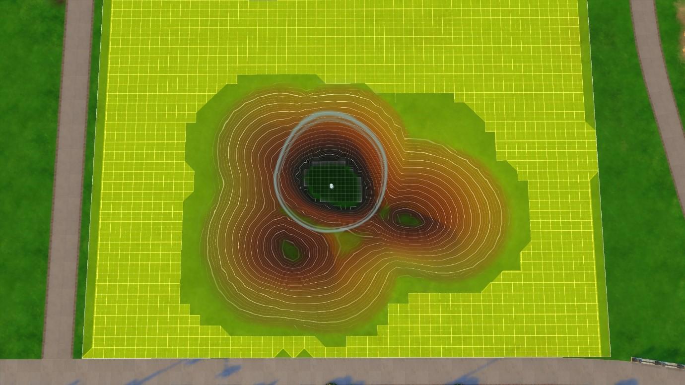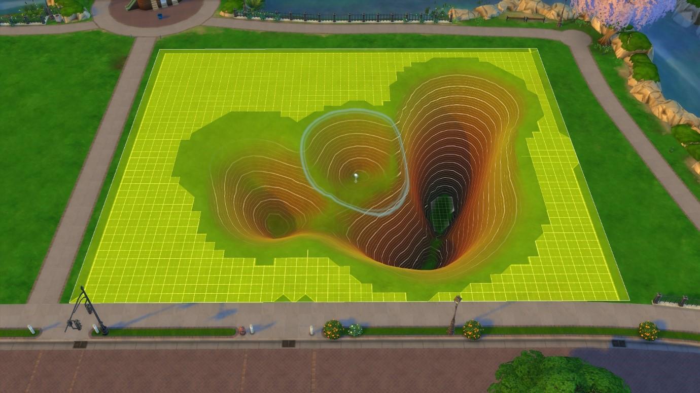 Этот инструмент работает в обратном направлении. Благодаря ему можно создать каньоны, долины и провалы в местности на вашем участке. И также есть предел тому, насколько глубоко вы можете сделать углубление на своем участке. Как только вы достигнете этого предела, местность в самой глубокой точке вашей пещеры начнет выравниваться.