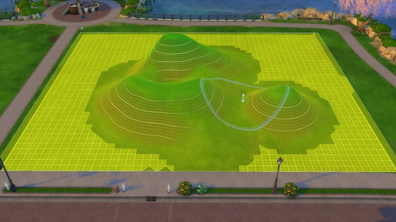 Важно отметить, что не все лоты в Sims 4 являются плоскими по умолчанию . Если вы загружаете лот и выбираете инструмент манипуляции с рельефом, но не видите желтых квадратов сетки, вам может потребоваться использовать инструмент выравнивание лота (см. ниже).