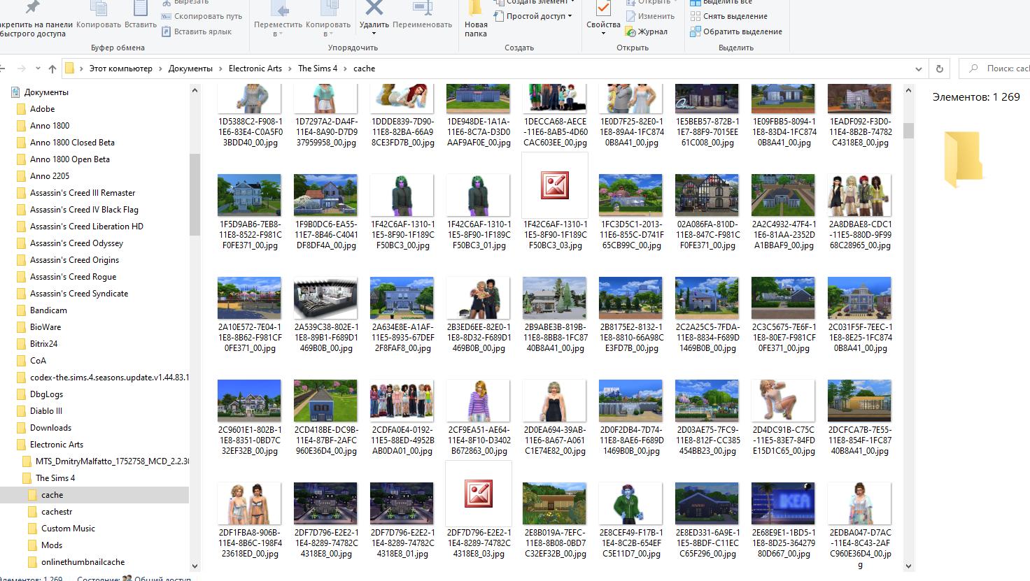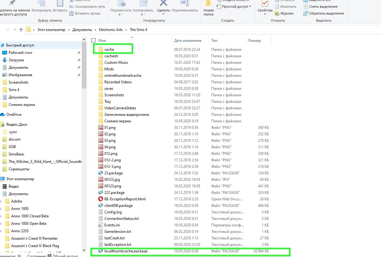 Для этого откройте папку Документы -> Electronic Arts -> The Sims 4. Там вы найдете папку с именем «cache» и файл с именем localthumbcache.