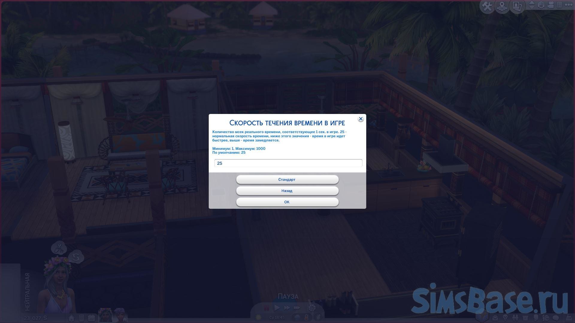 Изменение скорости времени в Sims 4