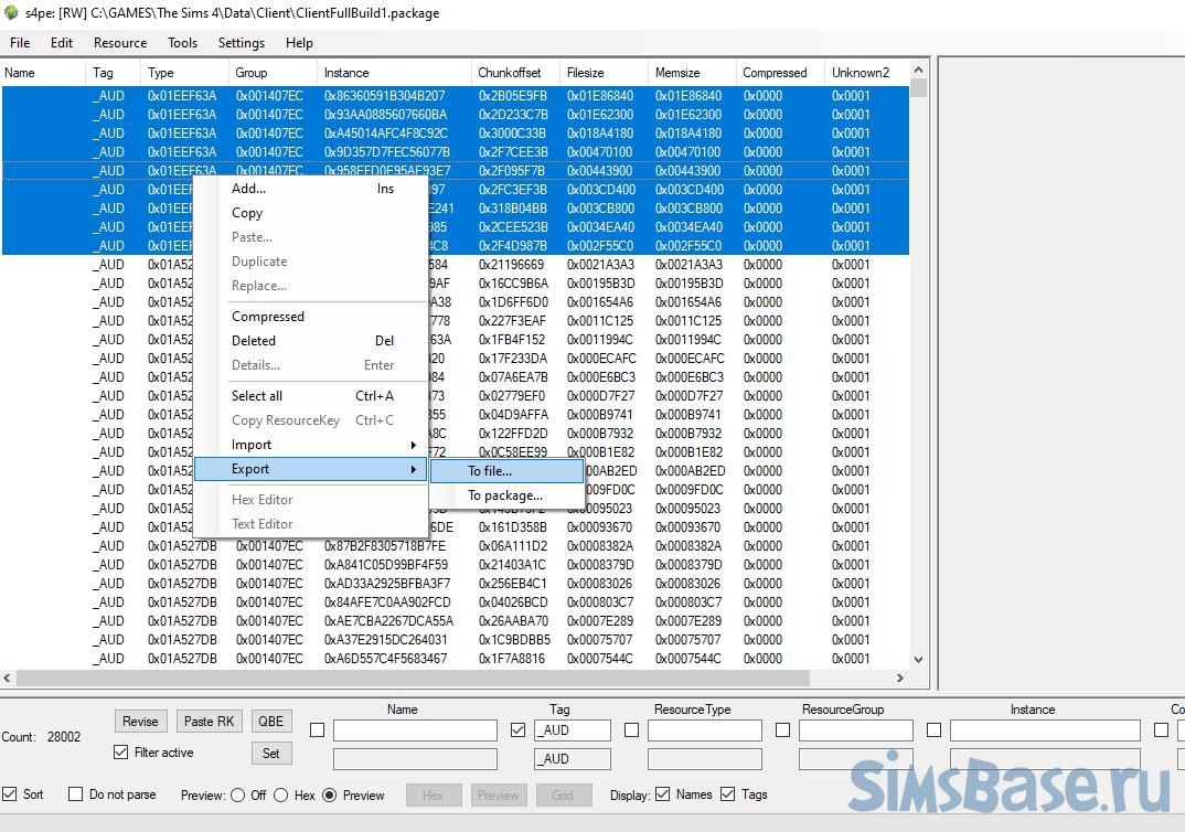 К сожалению, вы будете «слепы», и не сможете узнать, какой звуковой файл вы извлекаете. Редактор пакетов не может найти имена файлов внутри архивов. Но вы можете найти разницу между музыкой/саундтреком и звуковыми эффектами . Музыка из The Sims 4 имеет Type 0x01EEF63A , а остальное – SFX (звуковые эффекты).