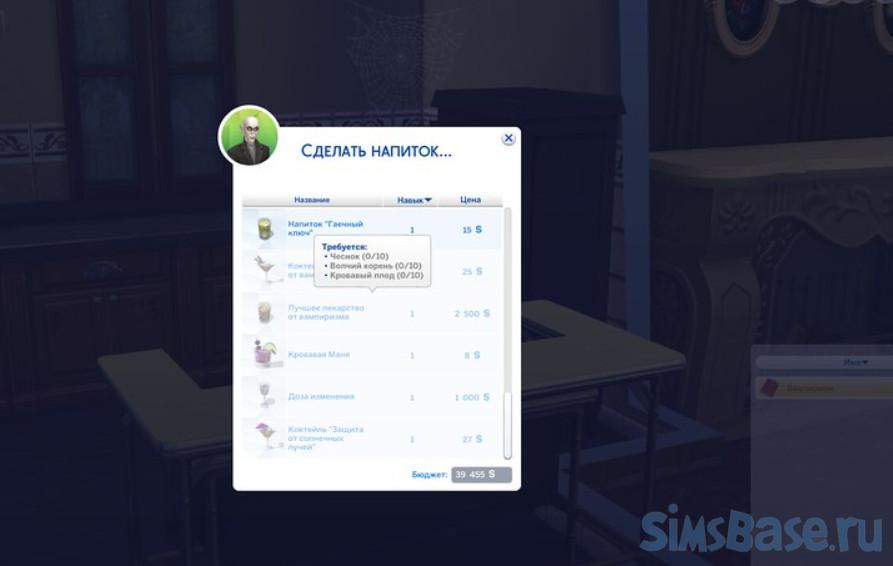 Когда сим достигает 15-го уровня в навыке, он разблокирует способность делать «Лучшее лекарство от вампиризма», которое можно смешивать, как коктейль, в любом баре. (К счастью, сопутствующий навык «Смешивание напитков» не требуются.)
