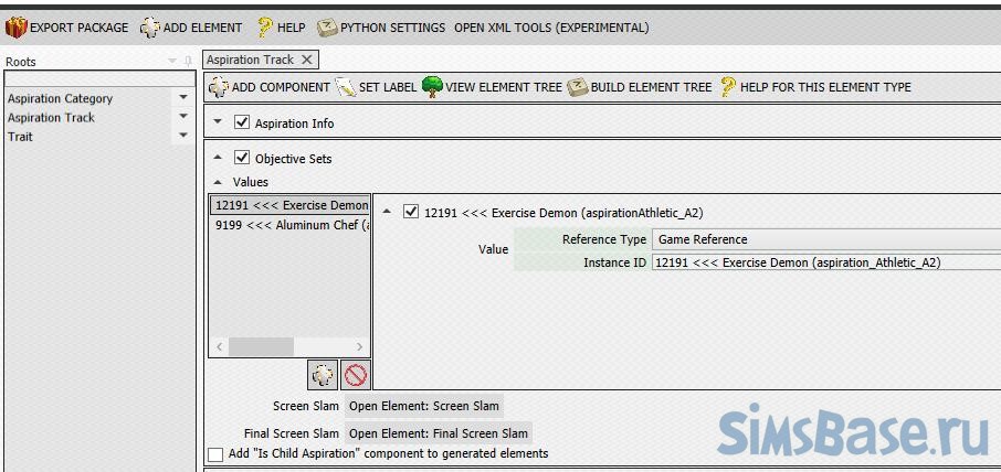 Переходим к Objective Sets (настройке задач). Мы решили, что подавать пример другим сим будет с помощью Фитнеса и Кулинарии. В игре уже есть ЖЦ Культурист и Шеф-повар, так что ими и воспользуемся.