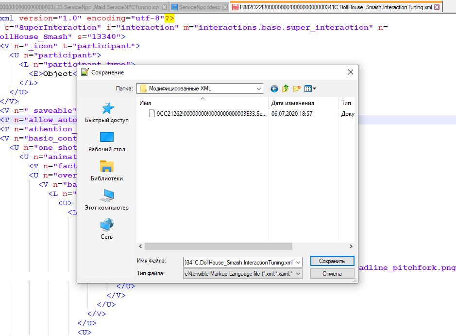 Выбираем Файл -> Сохранить как… и сохраняем наш новый XML в папке Модифицированные XML.