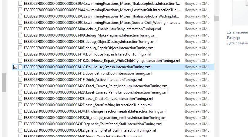 Ищите взаимодействие , которое вы хотите сделать неавтономным или наоборот, автомномным (см. ниже). Взаимодействие Dollhouse Smash действительно раздражает многих, поэтому мы будем использовать его в качестве примера. Если вы не представляете о чем речь, то это автономное действие, когда сим приходит в детскую или на площадку и… ломает кукольный домик. Просто ломает при разных ЧХ.