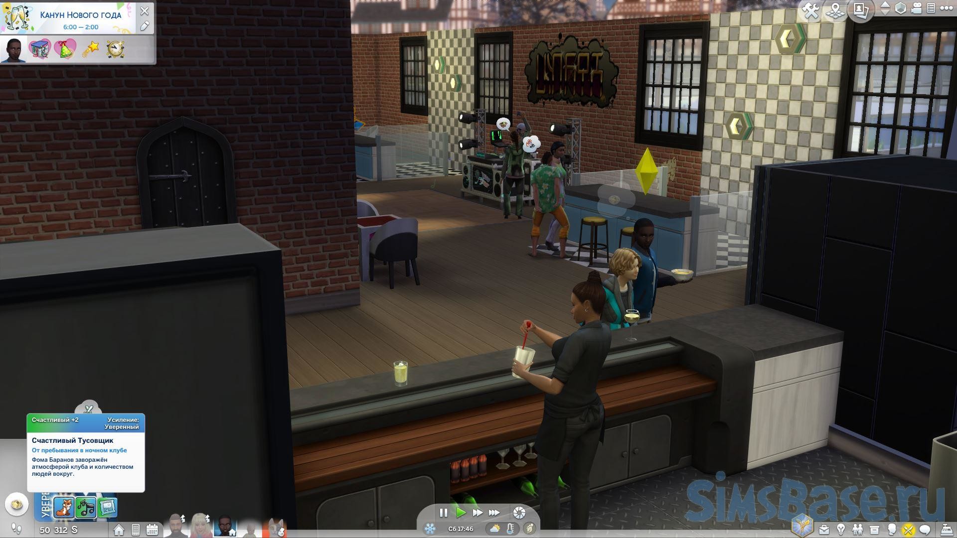 Заполняем детали (по аналогии с основным баффом) и выбираем силу действия Счастье +2. Да, наш сим будет просто в восторге от клубного общения.