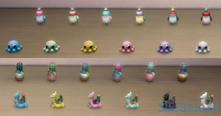 Каждый из них имеет до шести образцов разных цветов и весьма немаленький размер. Они хорошо сочетаются с любой мебелью и добавляют вязаного колорита любой комнате. Но, т.к. это не игрушки, взаимодействовать с этими предметами уже не получится.