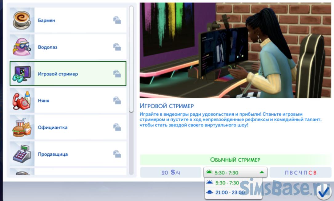 Игрокам потребуется расширение Старшая школа, чтобы получить доступ к подработке стримера видеоигр. Эта карьера связана с навыком предпринимателя, что означает, что игроки будут развивать этот навык по мере продвижения по уровням работы. В то время как базовый уровень начинается со скромной ставки 20 симолеонов в час, игроки смогут работать на этой работе в рамках внеклассных занятий и занятий своего сима. Чтобы перейти на уровень 2, их сим должен достичь уровня 2 как в навыках предпринимателя , так и в навыках видеоигр .