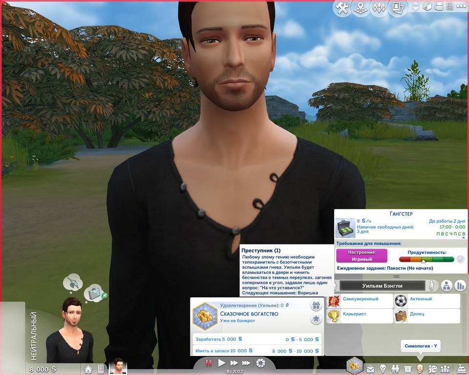 Если вы хотите сосредоточить игру на карьерном росте симов, эта комбинация станет отличным стартом. Самоуверенный сим, как понятно из названия, всегда чувствует себя уверенно, что помогает ему отправляться на работу в подходящем настроении. Это настроение положительно влияет на производительность, и ваш сим быстро продвинется по карьерной лестнице, а вместе с тем начнет хорошо зарабатывать.