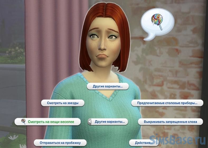 Негативные эмоциональные баффы быстрее будут проходить, чем обычно, когда веселые симы находятся в счастливом настроении. Т.е. если баффов на симе много – плохие быстро улетучатся. НО. Только если он выберет взаимодействие «Смотреть на вещи веселее» (это если кликнуть по самому нашему герою-симу).