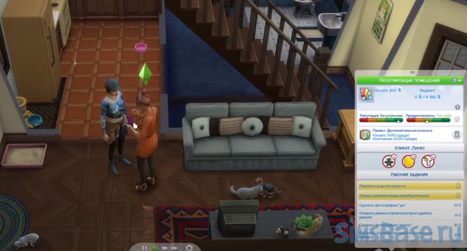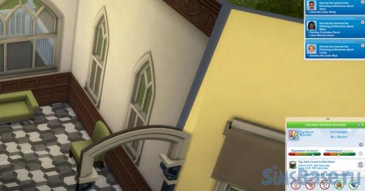 Часто ваш клиент даже не говорит вам, каковы его предпочтения и какую комнату он хочет, чтобы вы изменили. Скажем больше, не все нужные предпочтения вообще отображаются и открываются через меню Дизайнер интерьеров и на панели карьеры. Выбор комнаты для ремонта в расширении The Sims 4 Интерьер мечты вообще не так очевиден.