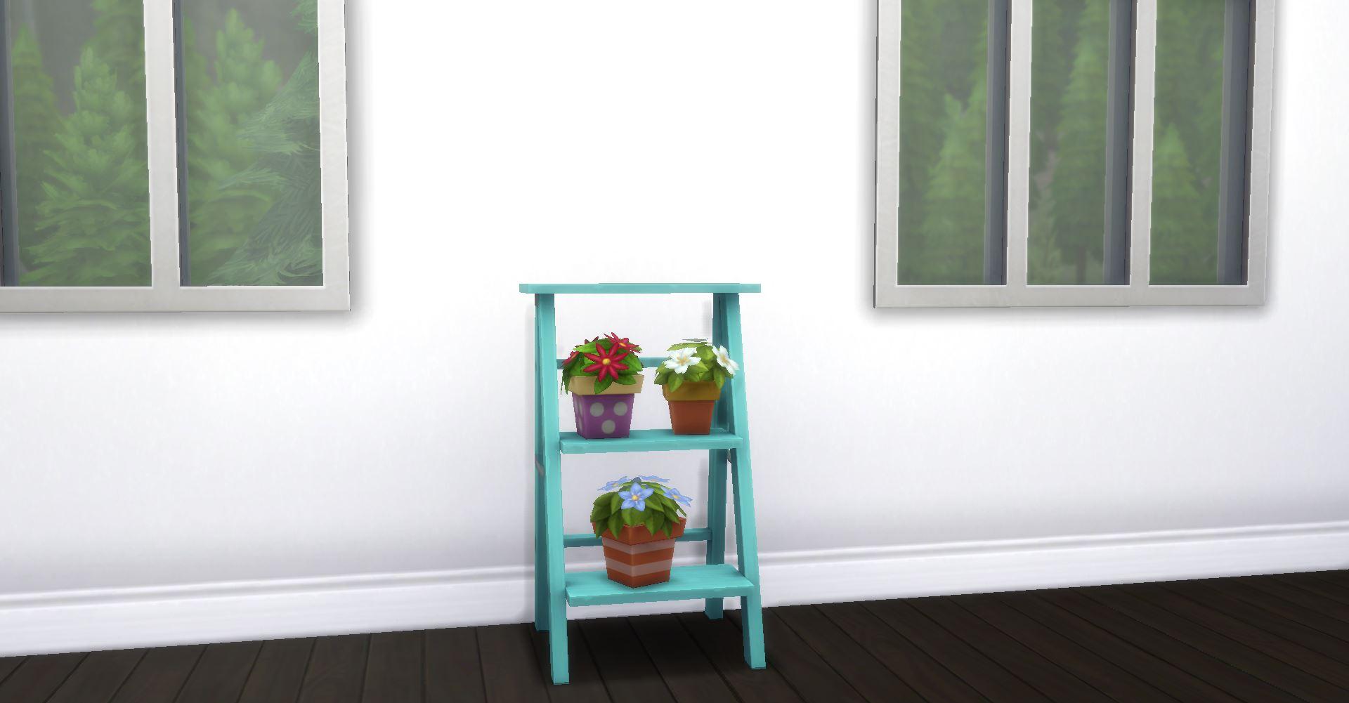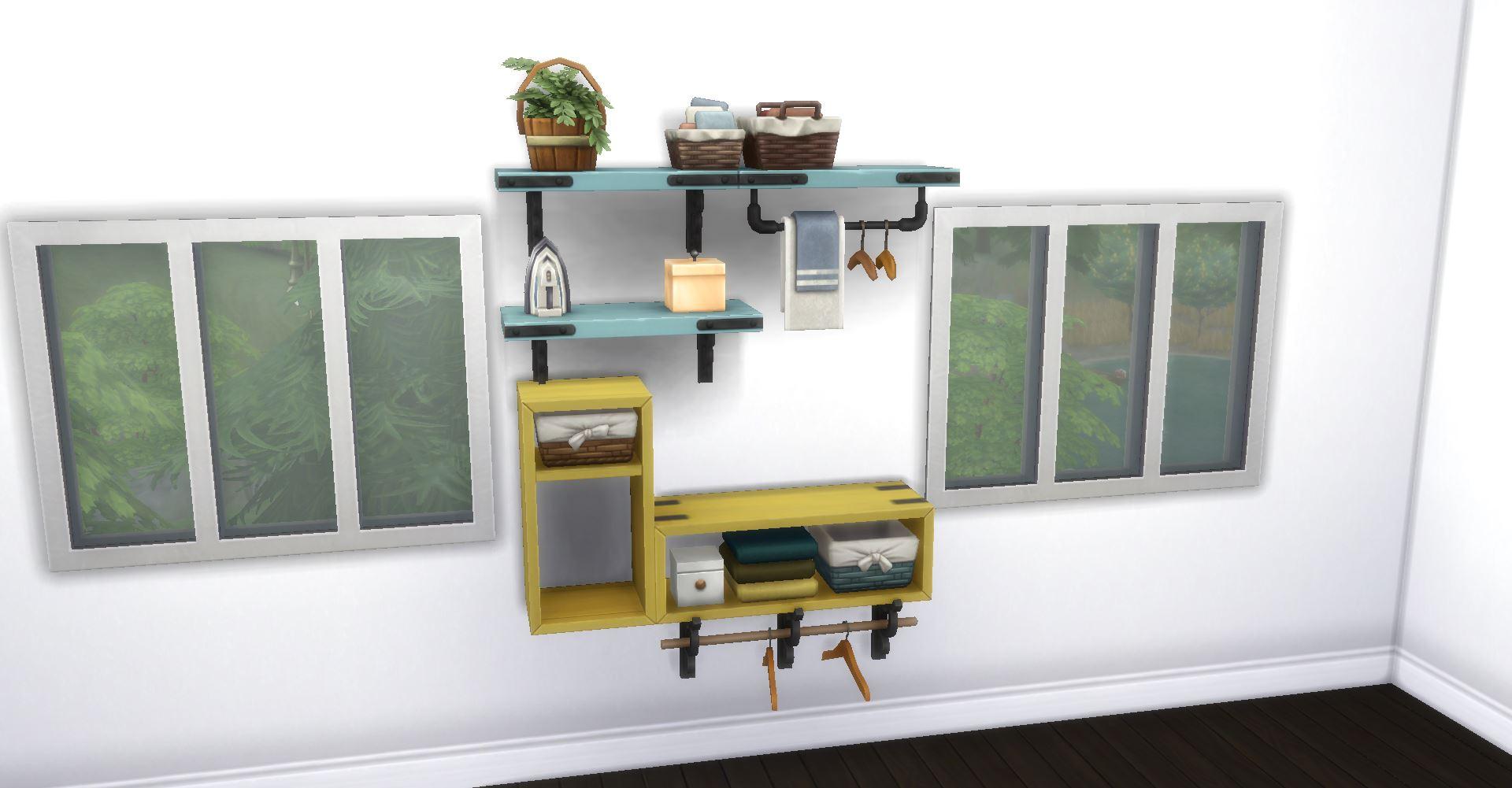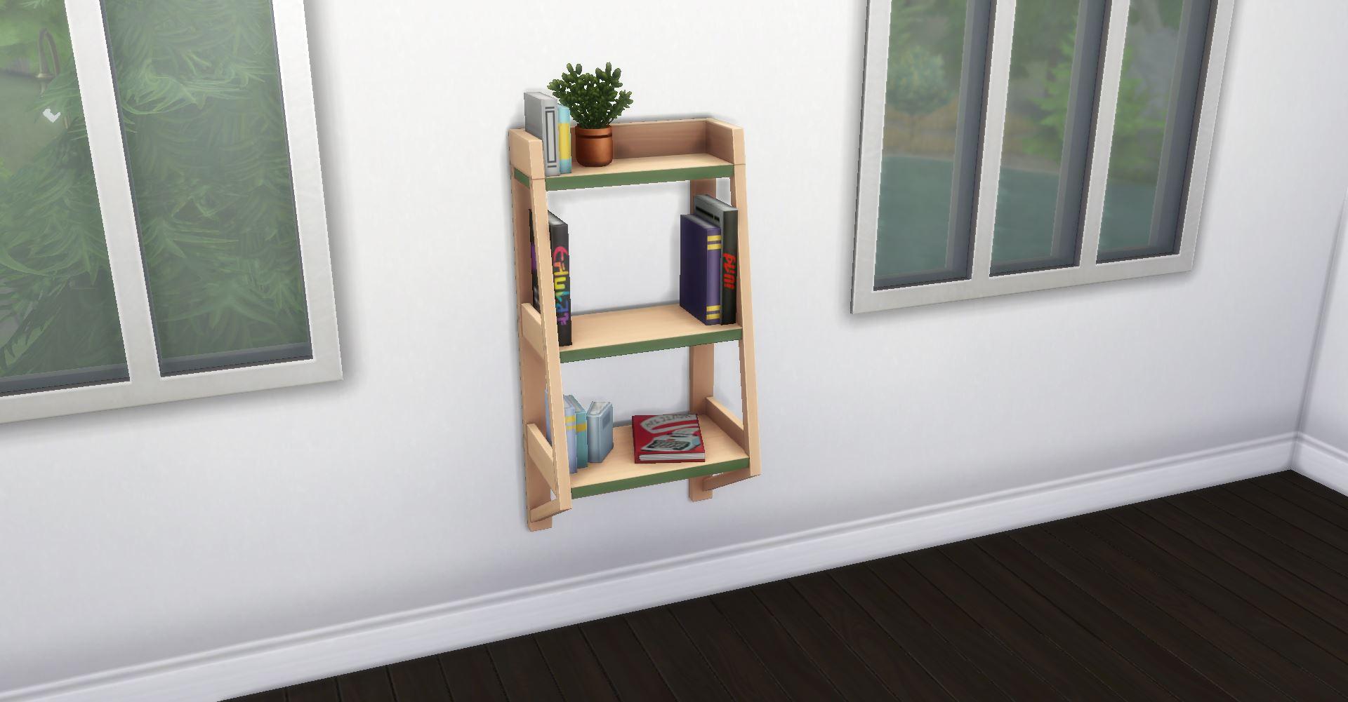Этот функциональный предмет из базовой игры выглядит стильно и предоставляет полку для создания беспорядка. Под ним можно разместить растения или добавить ещё больше декора на полу.