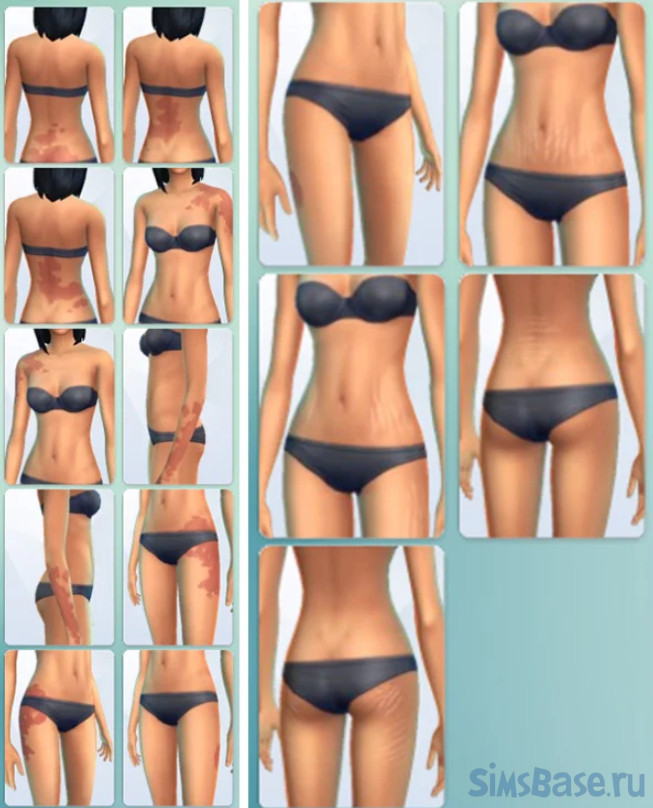 Категория «Детали кожи» также является новой, предлагая различные варианты растяжек и родимых пятен.