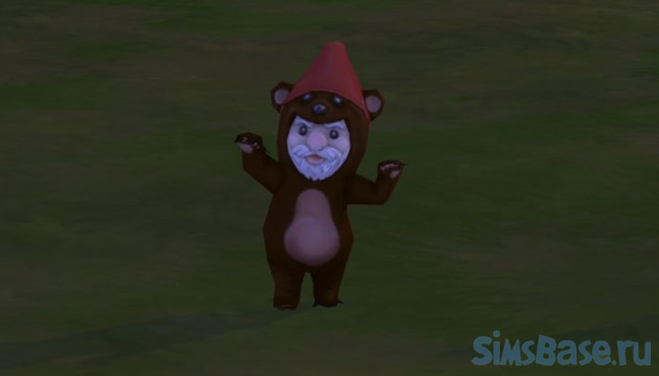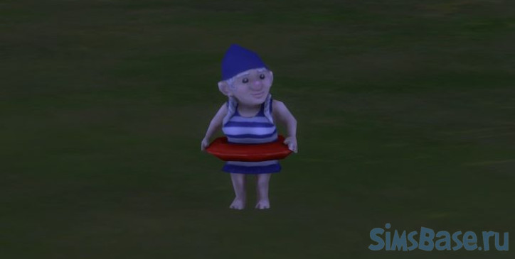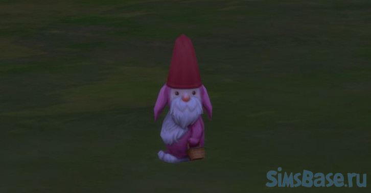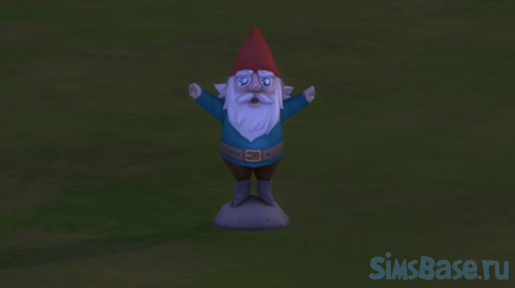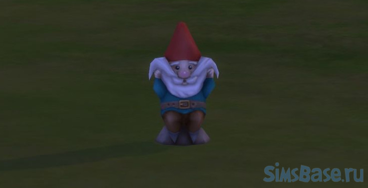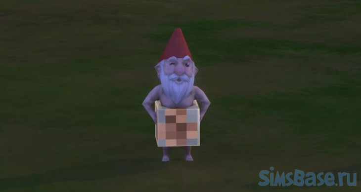Выглядящий так же, как голый пиксельный сим, «Основы Ню» – забавное, если не скандальное, дополнение к лужайке любого сима. Гном успокаивается, давая ему игрушку.