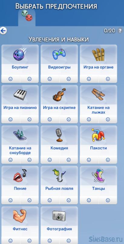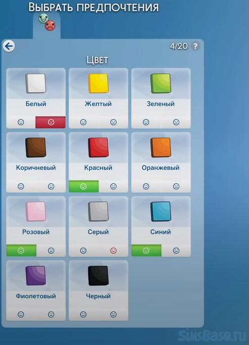 Вы можете выбрать, что нравится или не нравится вашим симам, в каждой категории, щелкнув по счастливому или грустному лицу под каждым параметром. Симы могут иметь несколько симпатий и антипатий в одной и той же категории, но убедитесь, что вы сбалансировали их, потому что они ограничены в общей сложности 20 симпатиями и антипатиями, объединенными во всех трех категориях.