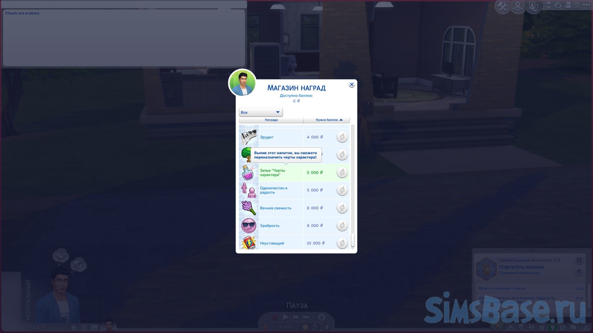 Первый способ изменить черты характера вашего сима – использовать зелье изменения характеристик, которое можно купить в магазине наград за очки удовлетворения. Именуется оно как Зелье «Черты характера». Это зелье было добавлено в июне 2018 года и позволяет полностью изменить личность вашего сима.
