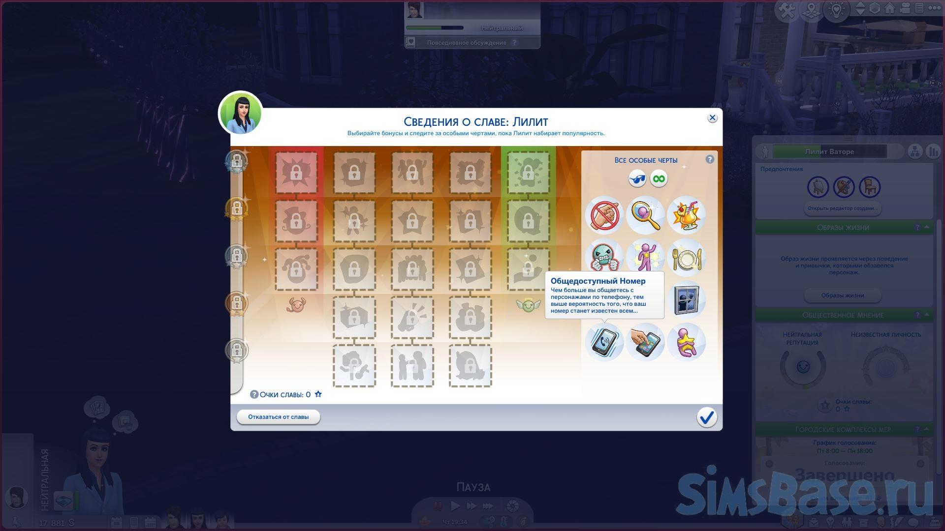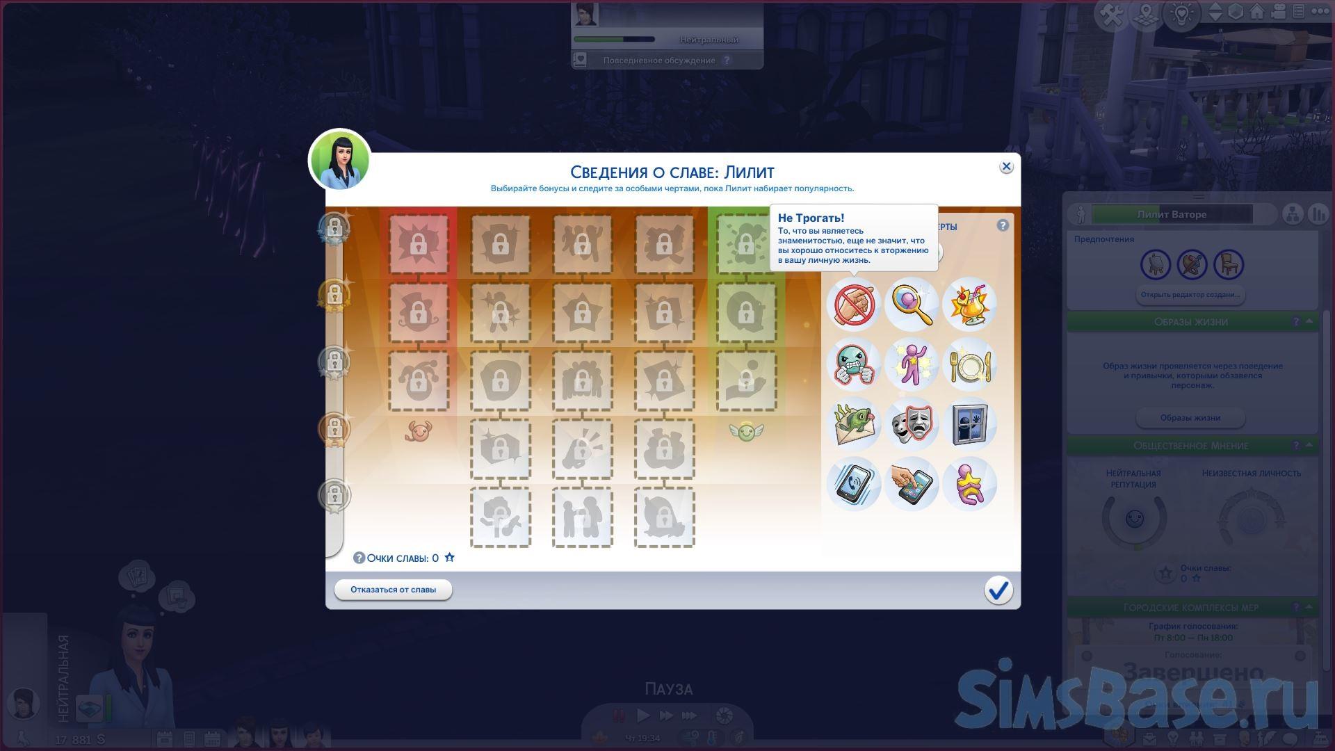 Симы-интроверты, которым даже самые незначительные социальные взаимодействия или признания кажутся невыносимыми, могут вообще отказаться от привлечения внимания к себе, нажав отказ от славы.