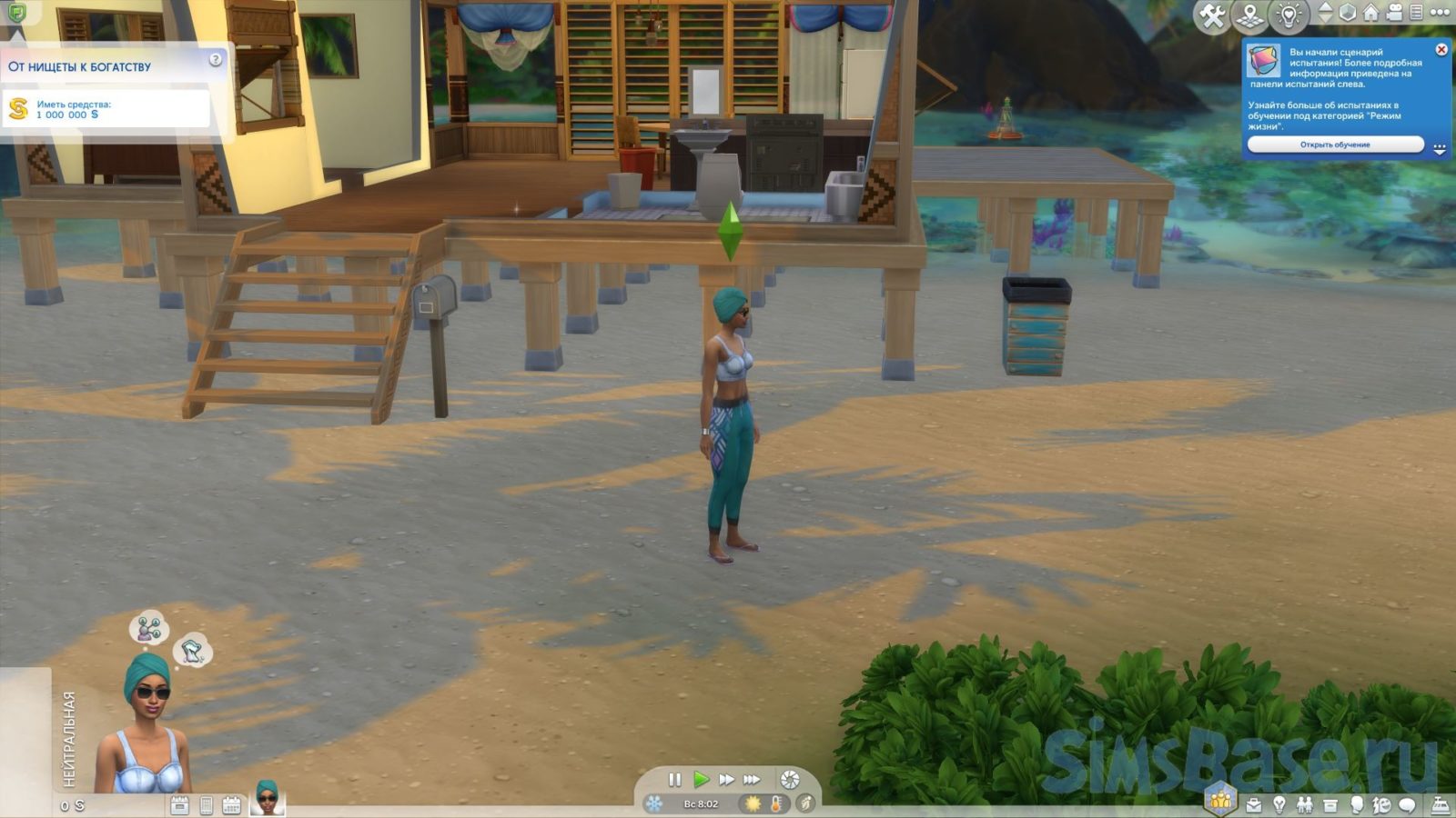 Как только вы создадите свою семью, они получат обычные стартовые средства. Однако отличие от обычного игрового процесса заключается в том, что после того, как вы приобрели пустой участок или дом, ваши семейные средства будут сведены к нулю. Ваша цель – заработать миллион симолеонов. Всё.