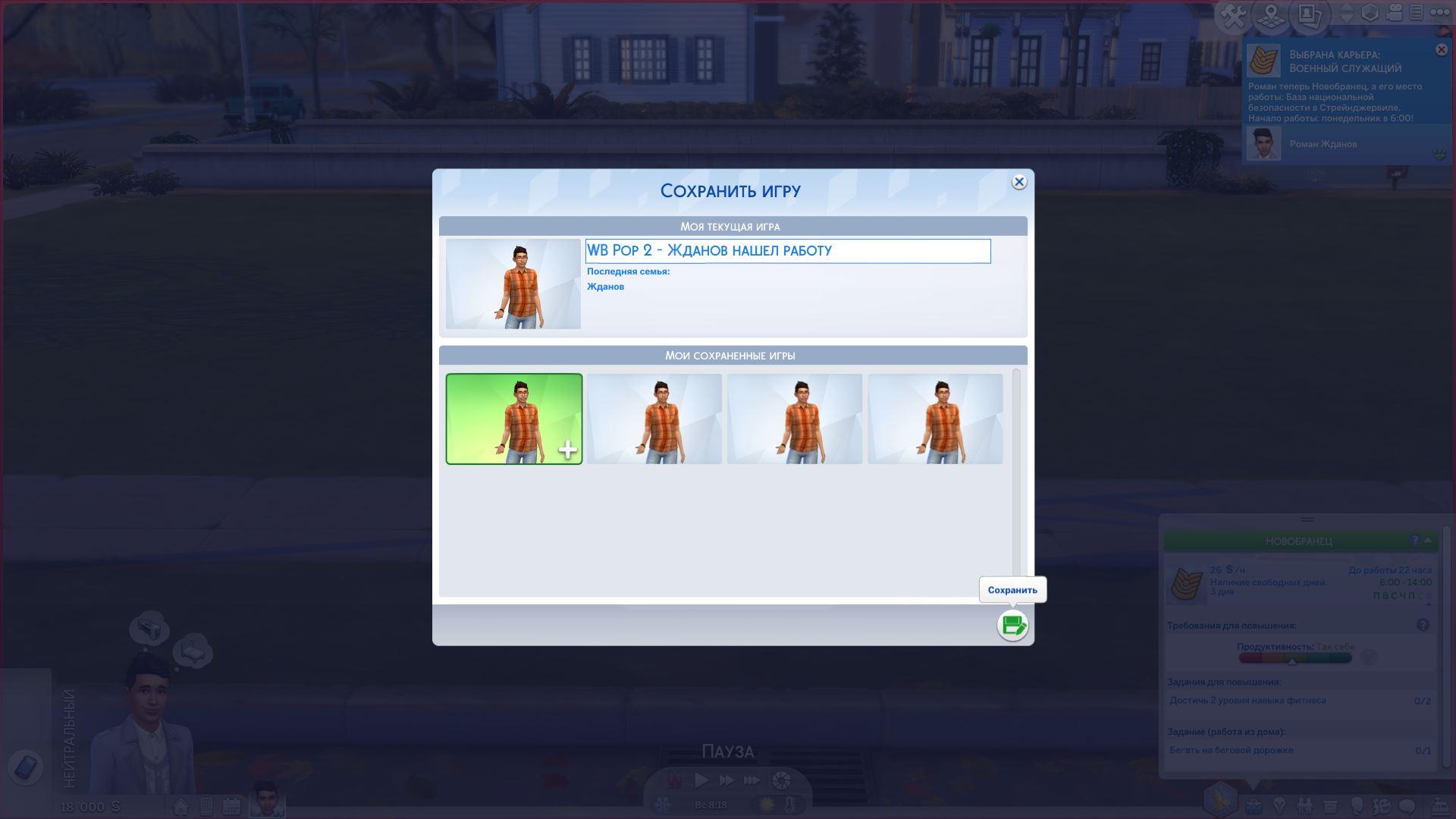 Первая неделя игры. Герой Жданов устроился на работу . Ключевая точка для сохранения.