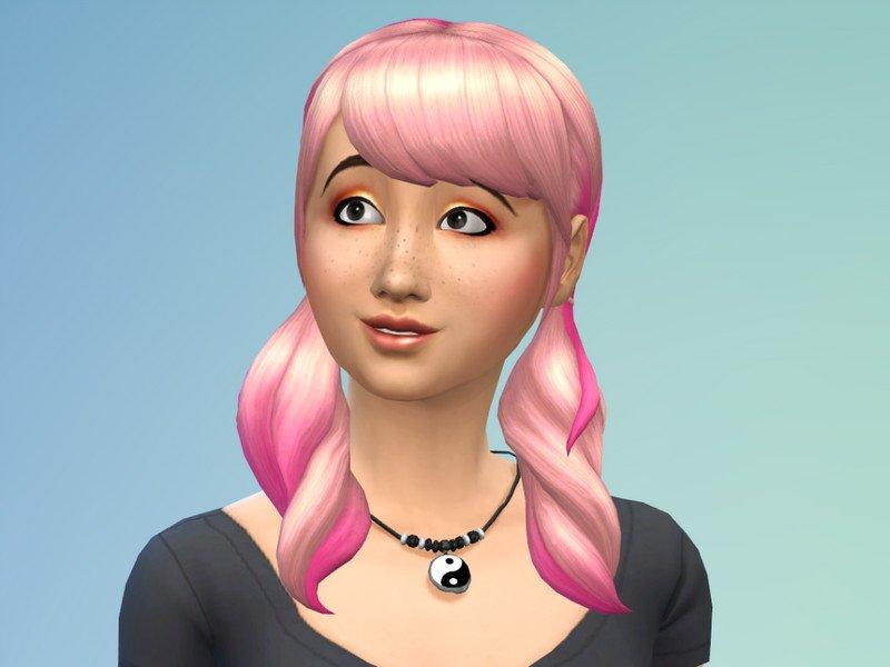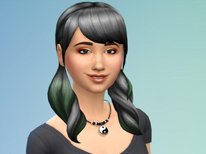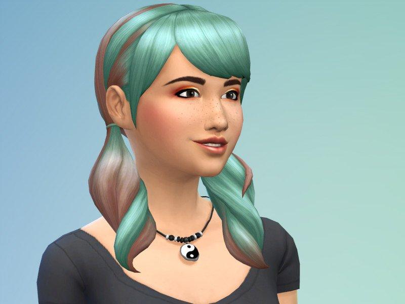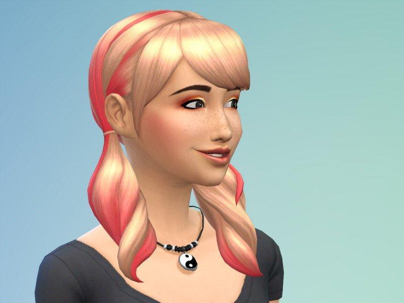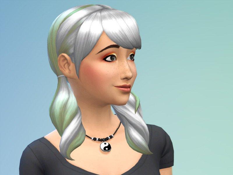 Стильная и молодежная прическа – два хвостика на прямой пробор и челка откинутая вбок с оттененными контрастным тоном прядями. Для этой прически использовался шаблон из базовой версии игры , автор добавил немного цветового разнообразия для всех оттенков волос.