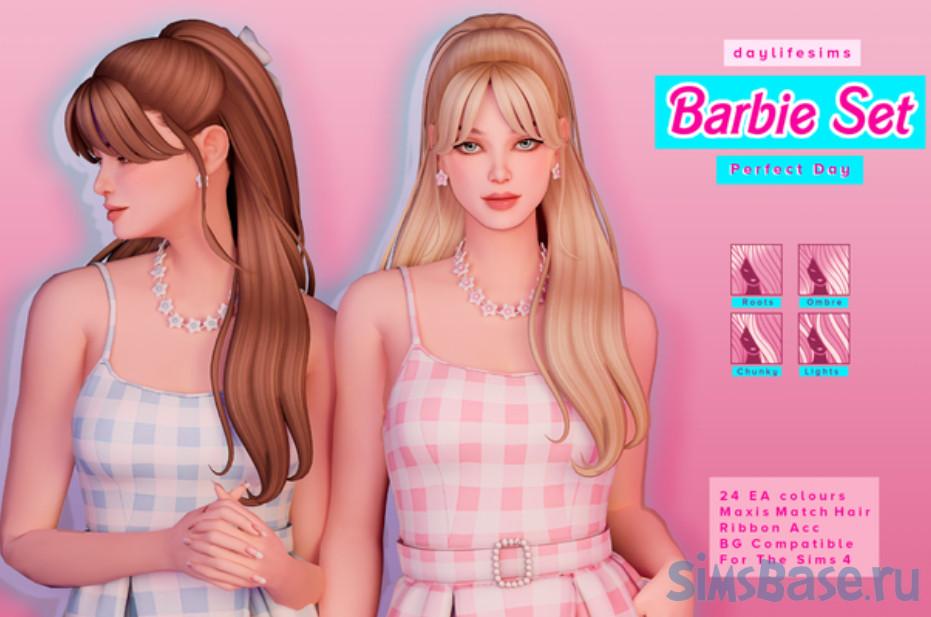 Набор включает несколько вариантов самых распространённых и известных многим причесок кукол Барби. Длинные волосы с чёлкой, короткие с лентой, высокие хвосты и косы. Все они имеют множественные цвета и совместимость с головными уборами. Для одноименного челленджа подойдут как нельзя кстати.