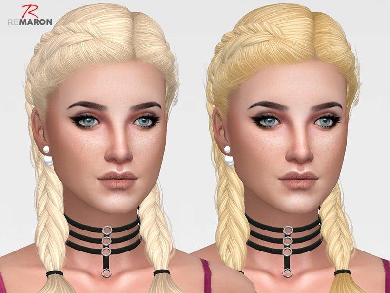 Две миленькие косички начинаются от границы роста волос. Работают с головными уборами. В наборе оригинальный вариант от Leah Lillith (более однородная расцветка) и ретекстурирование от remaron.