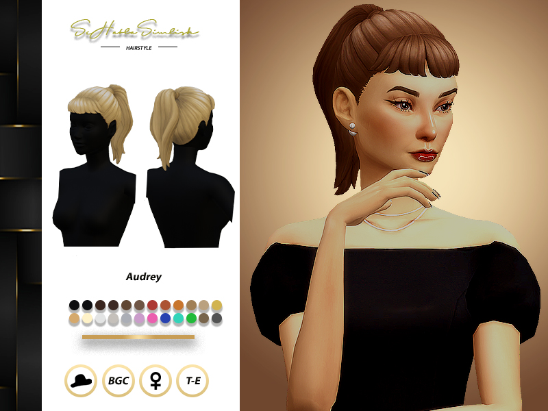 Представляем вашему вниманию очаровательную причёску Audrey Hairstyle от талантливого создателя sehablasimlish! Эта элегантная женская причёска вдохновлена классическим стилем Одри Хепбёрн — изысканный короткий боб с мягкими волнами, который добавит вашим симочкам утончённости и винтажного шарма 50-60-х годов. Не точная копия, но невероятно близко к иконе стиля!