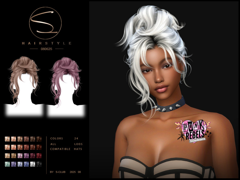 Добавьте в свою игру The Sims 4 бунтарский шик с новой прической (PUNK REBELS) S-Club 080625 Updo Hairstyle от знаменитого создателя S-Club! Эта стильная высокая укладка в панк-стиле идеально подойдет симкам, которые любят выделяться из толпы. Смелые объемные формы, дерзкие акценты и текстура, полная характера, — все это воплощает дух настоящих rebels.