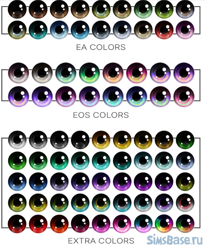 Коллекция объединила разные варианты глаз для людей, пришельцев, чародеев и т.д. Есть со зрачками и без, с разными радужками, тенями и без оных, с бликами и свечениями, с гетерохронией тоже имеются. Глаза можно использовать по умолчанию (соответствующий файл) или использовать как сс в обычном варианте. Запрещены для рандомных симов.